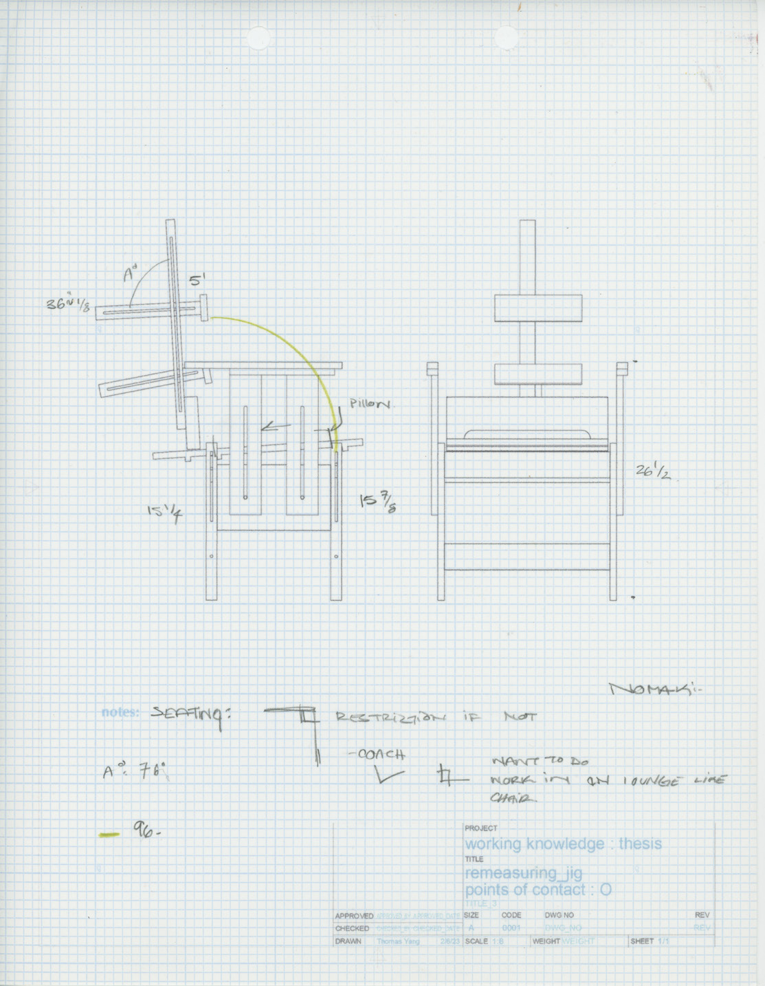 The remeasuring of Henry Dreyfuss’ measure of Man does not only live as a critique to the numerical data and scientific conformity of how a human being “should” sit, it also questions the intentions and motives behind the creation of furniture.